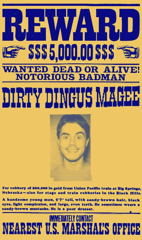 A man's gotta live by the Code of the West, Where the good guys be the bad guys When put to the test. Since there has to be a villain For the good guys to be killin, That's the reason I'm a bad guy: It's the code of the West. Chorus: I'm Dingus Magee, Dirty Dingus Magee, Rotten to the core, And plenty mean and ornery. I've lived a life of sin, And let me tell you, Gunga Din, I'm a better man than-- I'm a better man than-- ...And I can't think of anyone I'm a better man than. Men must make love by the Code of the West, Where you wear a pair of long johns When you are caressed. In my red flannel long johns It's been said that I'm a strong john, So I love em in my long johns It's the code of the West. (Chorus repeats three times.)